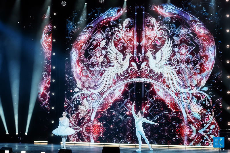 Светлана Захарова, прима‑балерина и народная артистка РФ, вместе с Артемием Беляковым исполнили дуэт из балета «Габриэль Шанель» — это было воплощение грации и красоты;