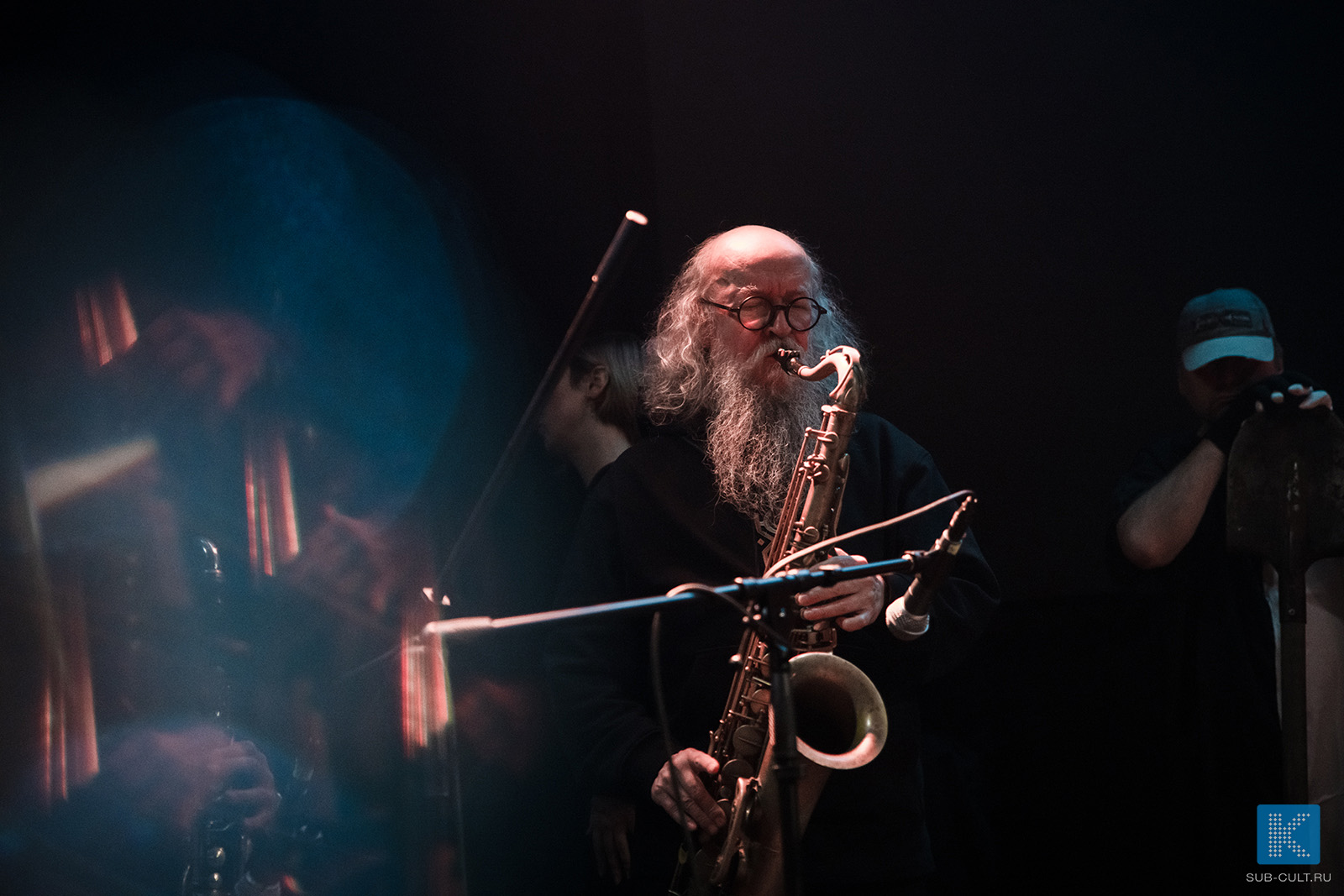 Начнём с того, что открывали фестиваль Cyclofillydea с театрализованным перформансом, где нашлось место и песне, и стихам и прозе. Стихи и проза были посвящены Офелии, а песня, кажется, была на итальянском языке — всё это исполнялось с профессиональным актёрским мастерством под первобытный, медленный и мрачный импровизационный джаз, при участии самого Сергея Летова.