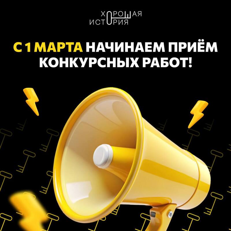 С 1 марта по 15 мая 2026 года проходит приём заявок на Всероссийский конкурс «Хорошая история». Режиссёры, студенты и медиаспециалисты в возрасте от 18 до 35 лет могут представить свои видеоработы о деятельности российских НКО. Проект помогает некоммерческим организациям получить качественный контент для продвижения, а молодым авторам — заявить о себе на федеральном уровне: лучшие фильмы покажут на телеканалах Национальной Медиа Группы, в онлайн-кинотеатре Okko и в сети «Центр кино».